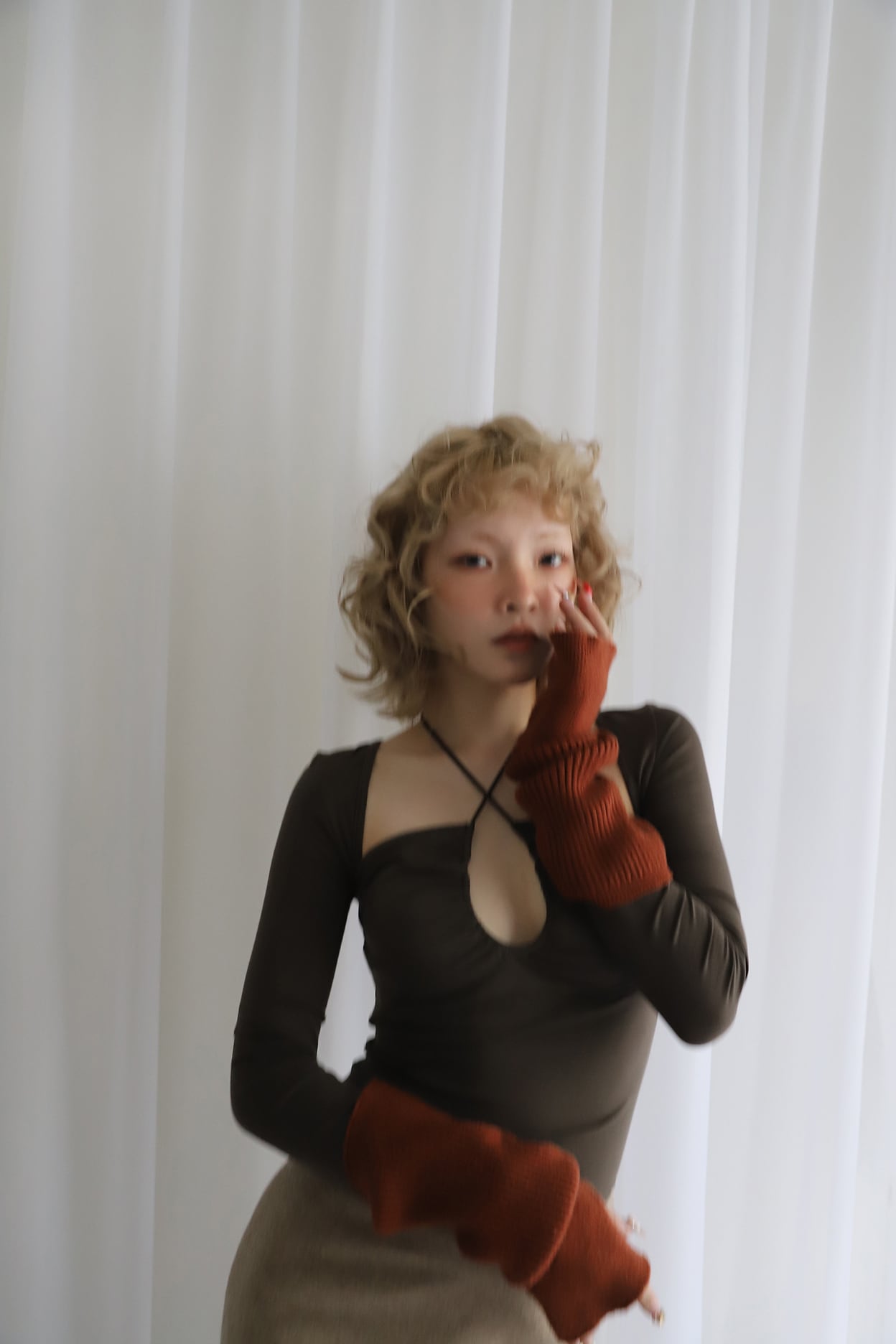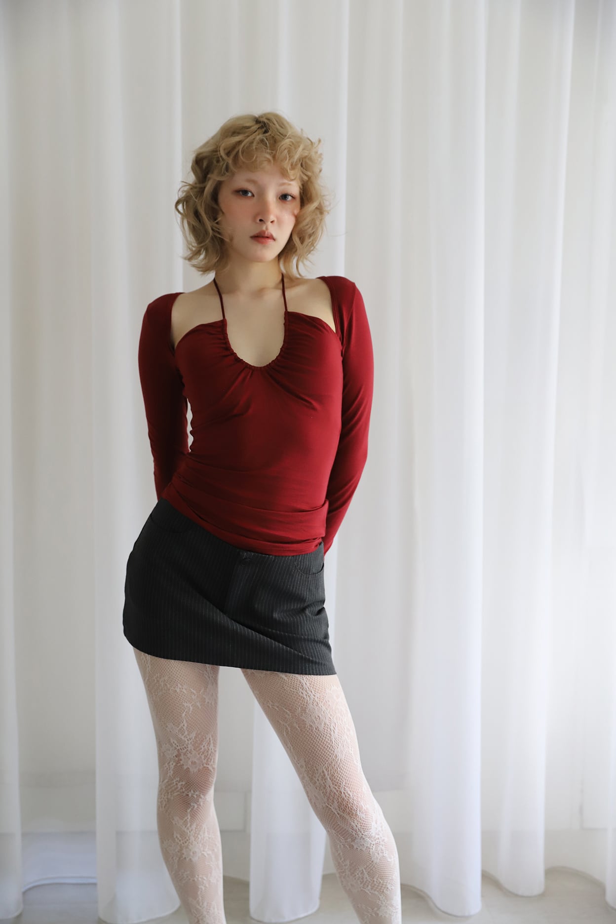 バスト周りに抜け感があるので、上からカーディガンやジャケットを羽織っても