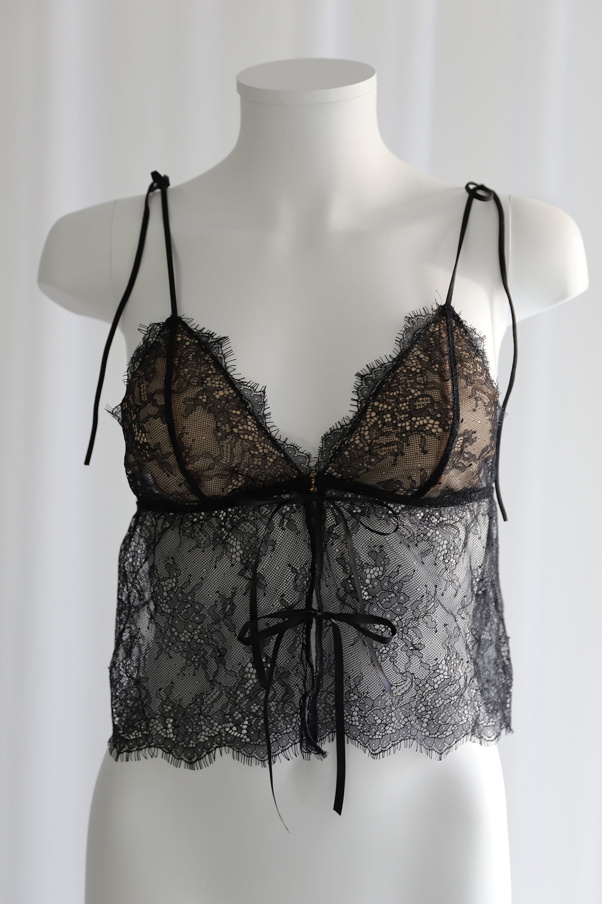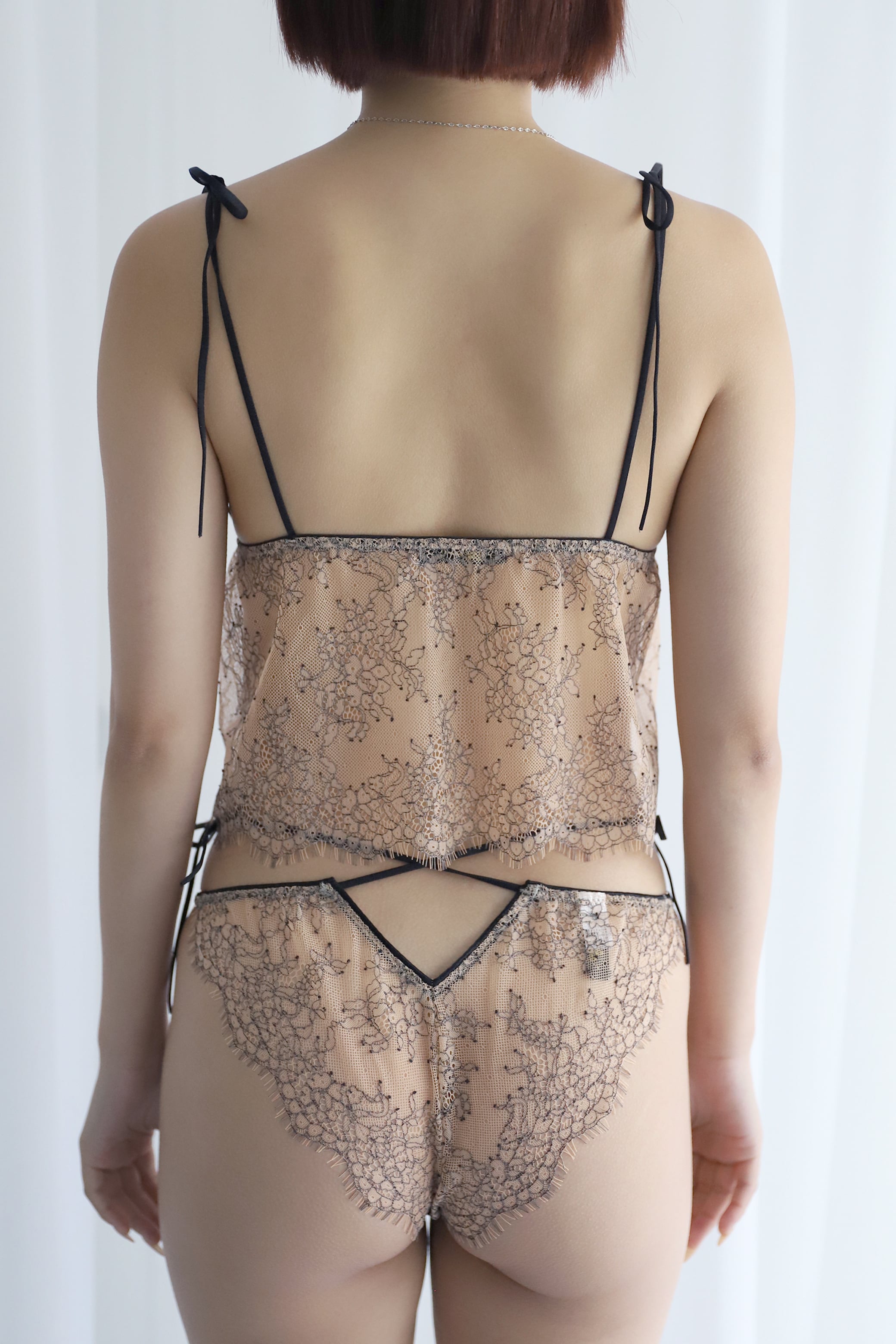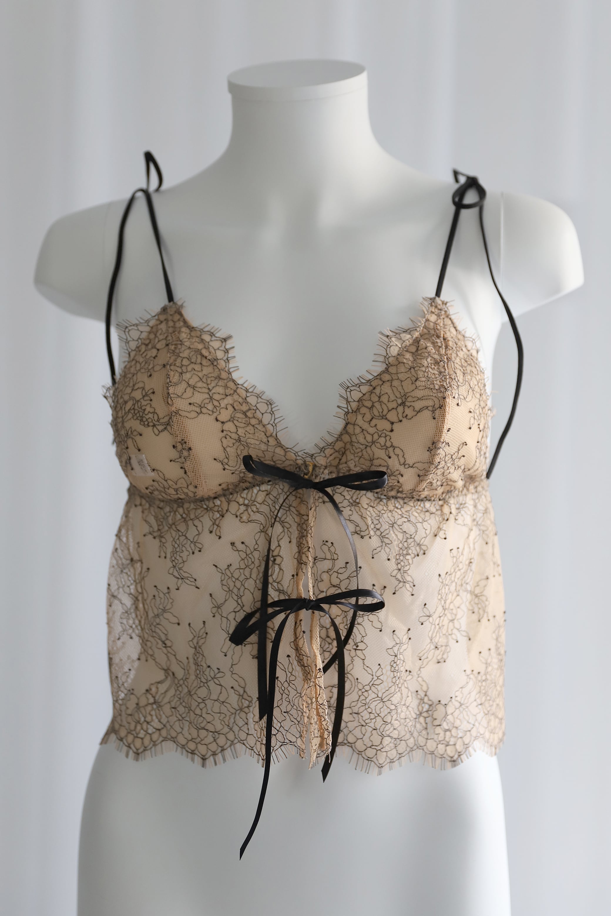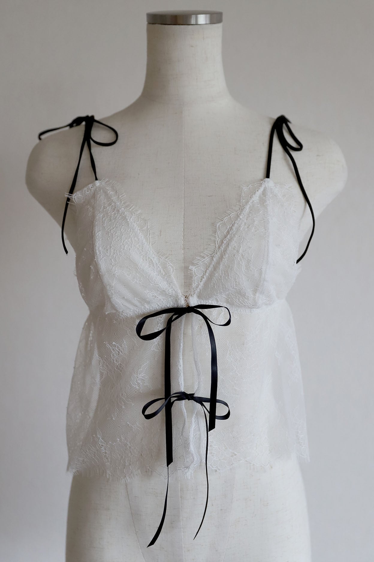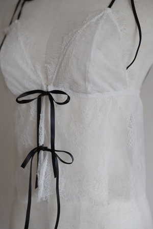 肩紐と胸元にはリボンをあしらった、可愛らしさをたっぷり詰め込んだデザインです。