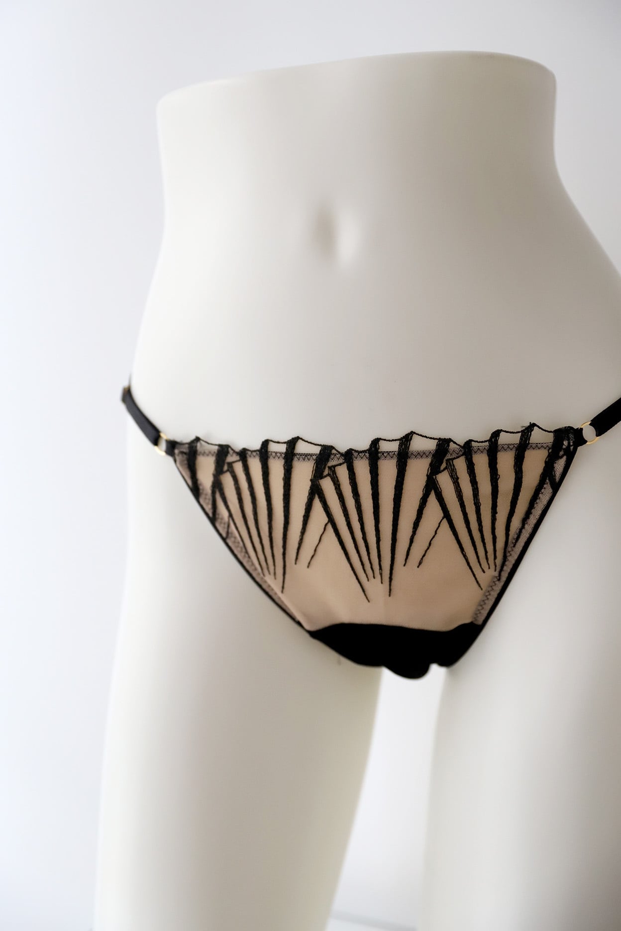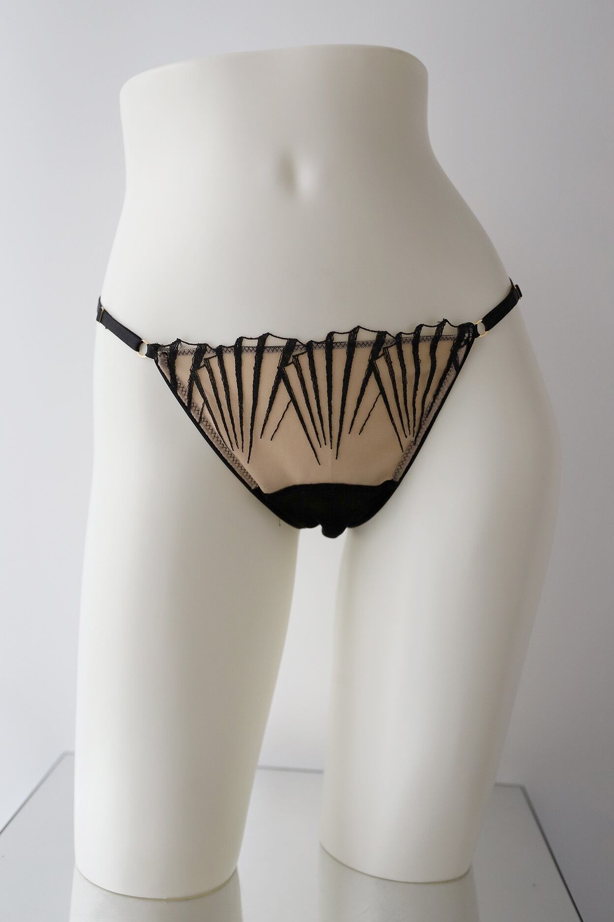 サイドの華奢なストラップが、腰回りを美しく彩ります。