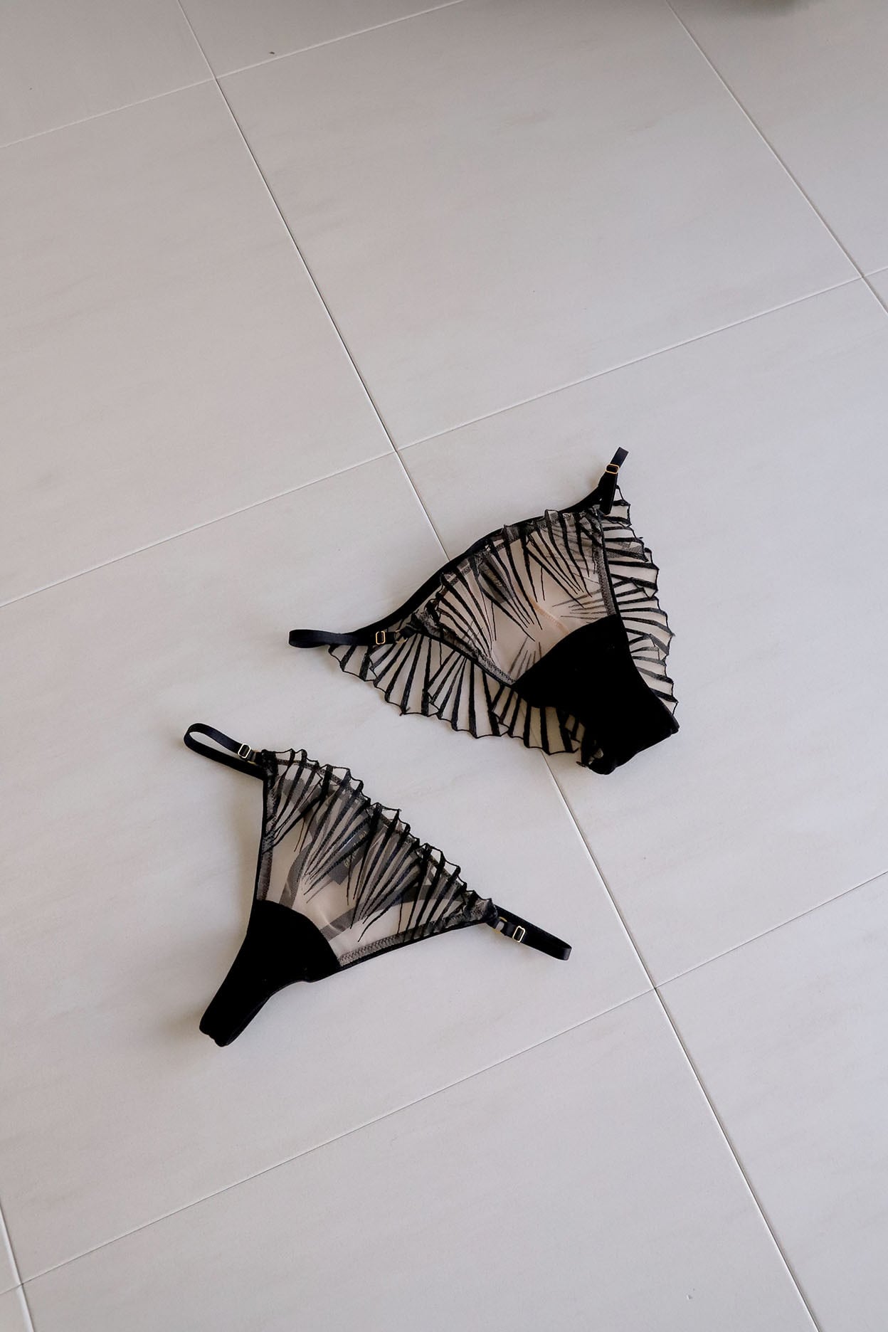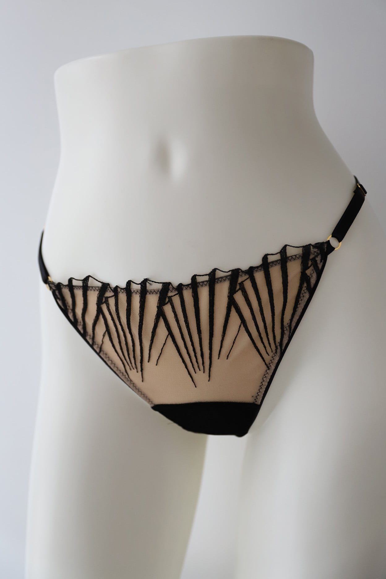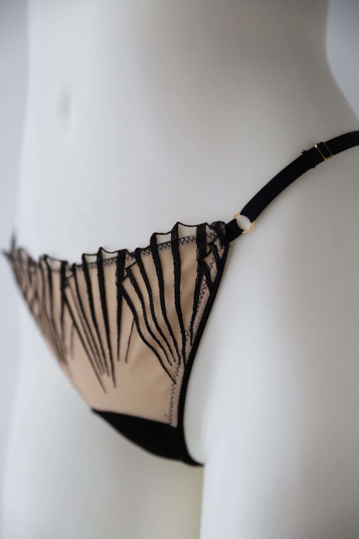 サイドの華奢なストラップが、腰回りを美しく彩ります。