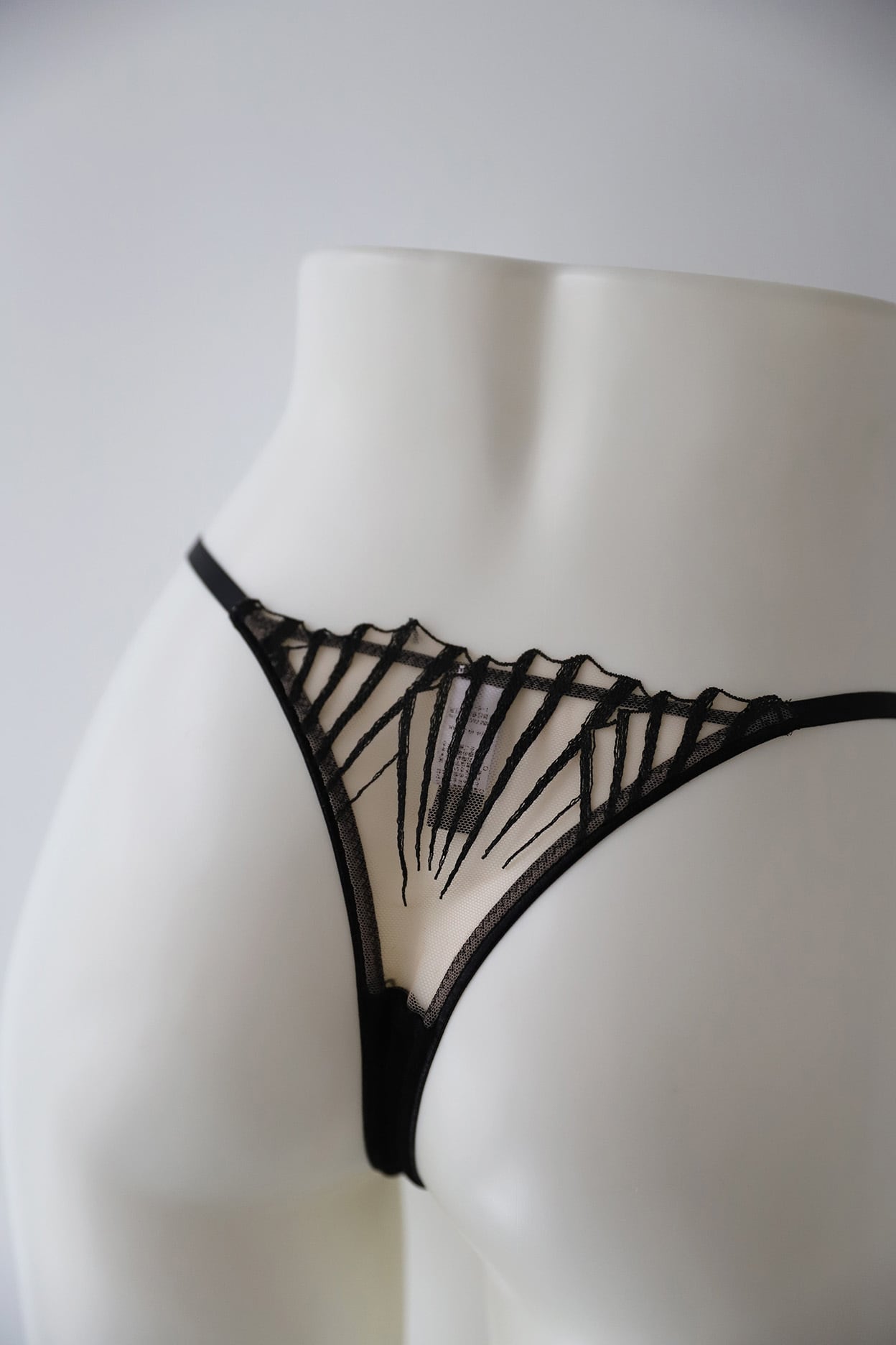 フロントはネットを重ねた2枚仕立て、バックスタイルは1枚レースにすることで、