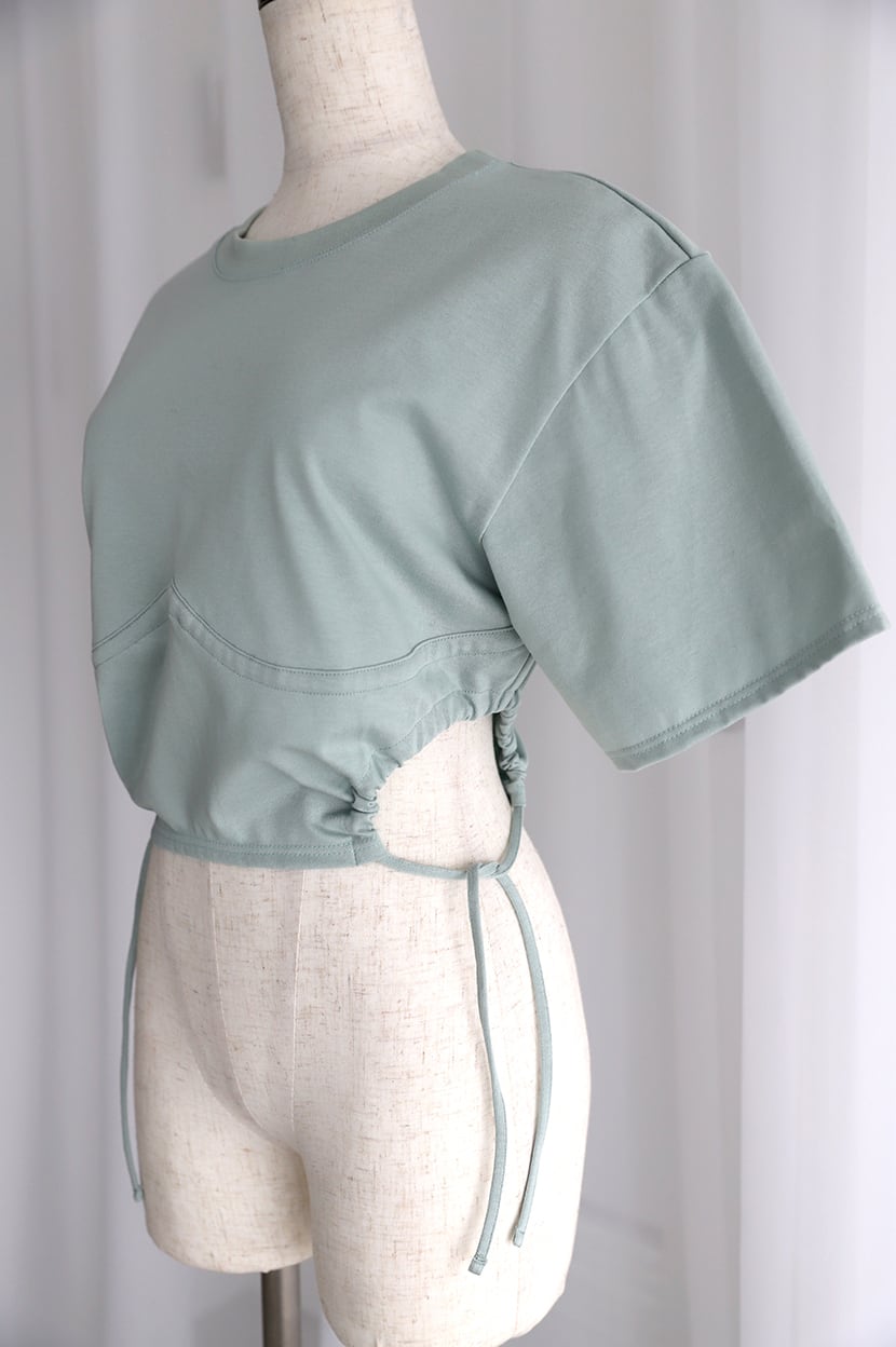 サイドの紐をキュッと絞ると、裾が体に沿ってフェミニンなスタイルに。