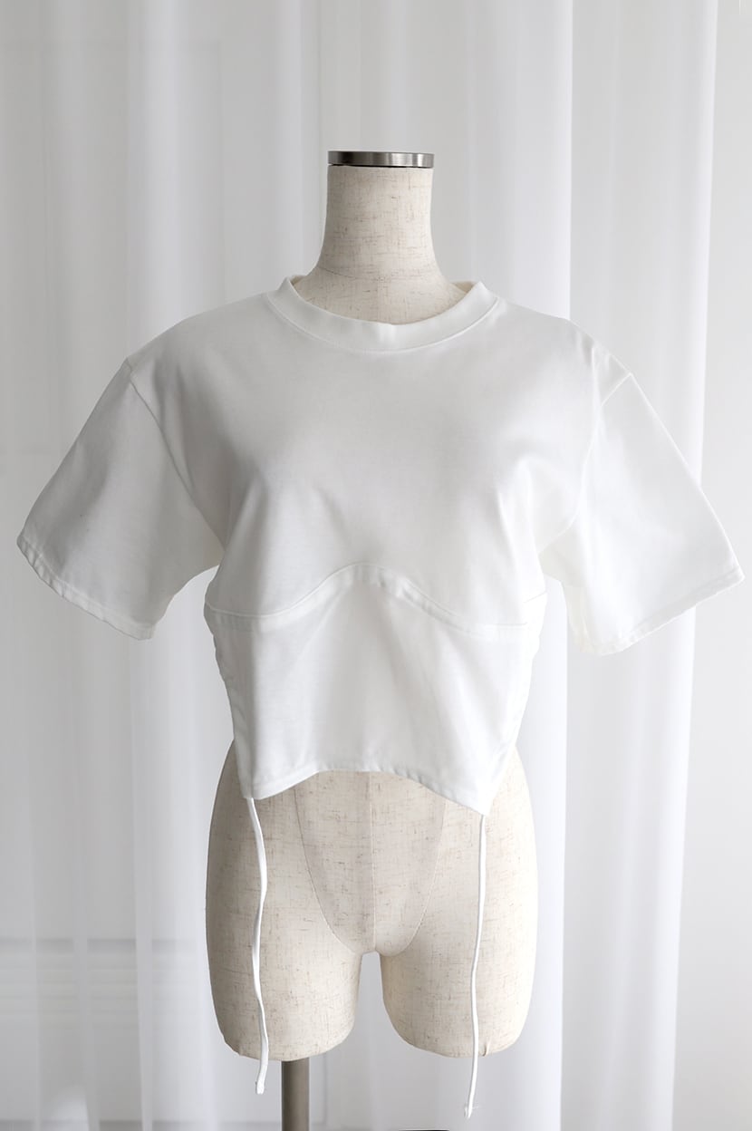ヘルシーな肌見せのバランス感を考えたショート丈Tシャツ。
